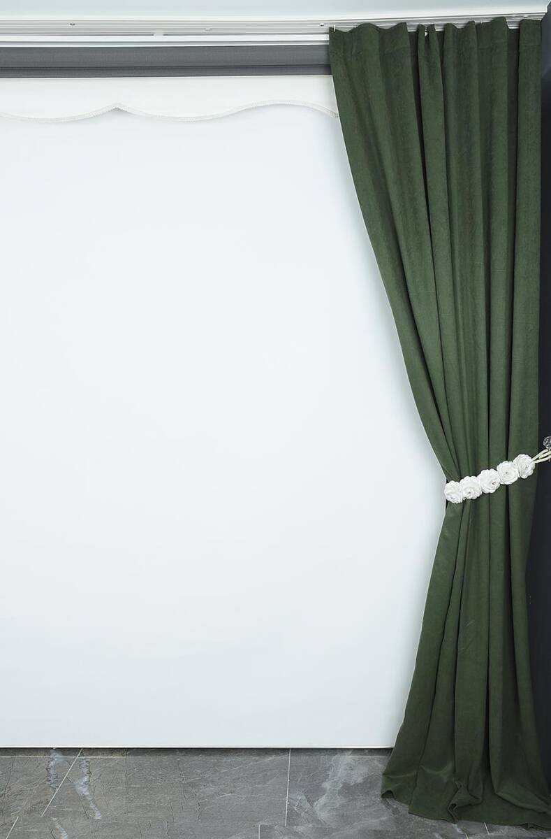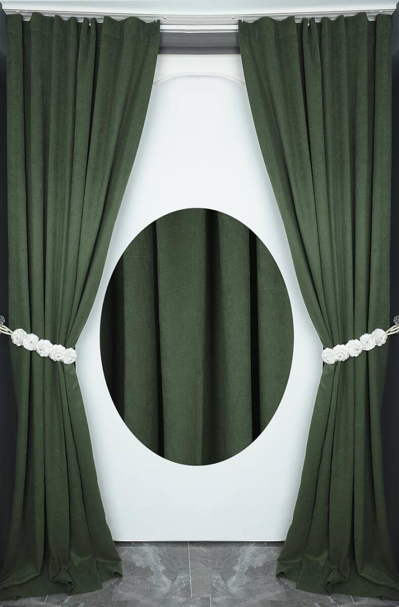 DOKUMA KOYU YEŞİL RENK (EKSTRAFOR BÜZGÜLÜ) TEK KANAT FON PERDE 150*260 CM