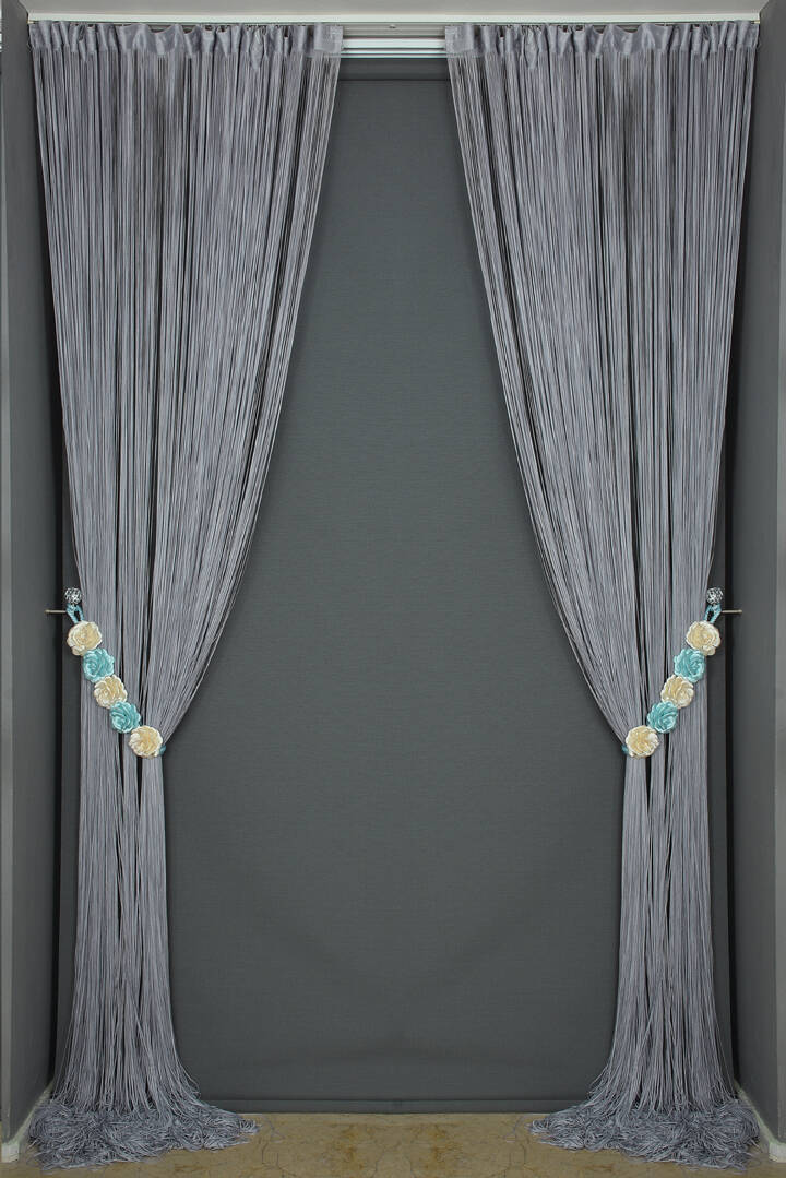 DÜZ İP ZİNCİR MODEL 180 CM EN GRİ RENK HAZIR İP PERDE 180*280
