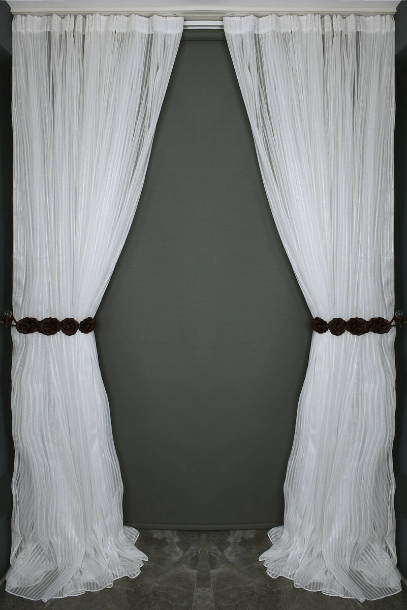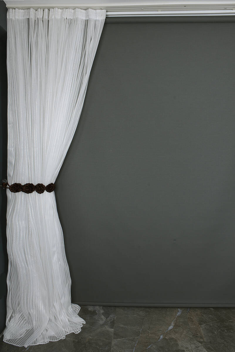 * MAKARNA 350 MODEL KIRIK BEYAZ RENK SİMLİ TÜL PERDE