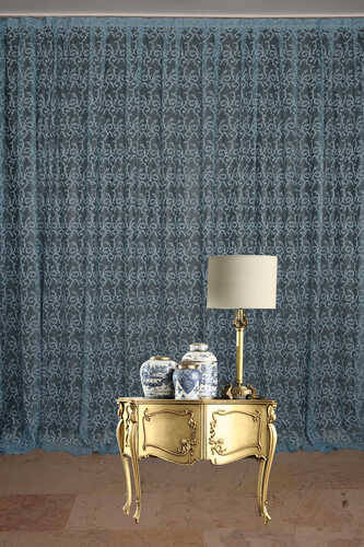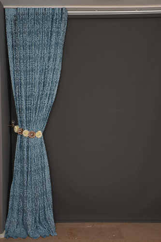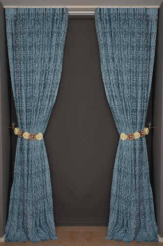 ŞAL MODEL MAVİ RENK TEK KANAT Hazır dikilmiş Pileli Fon Perde 300*260 cm