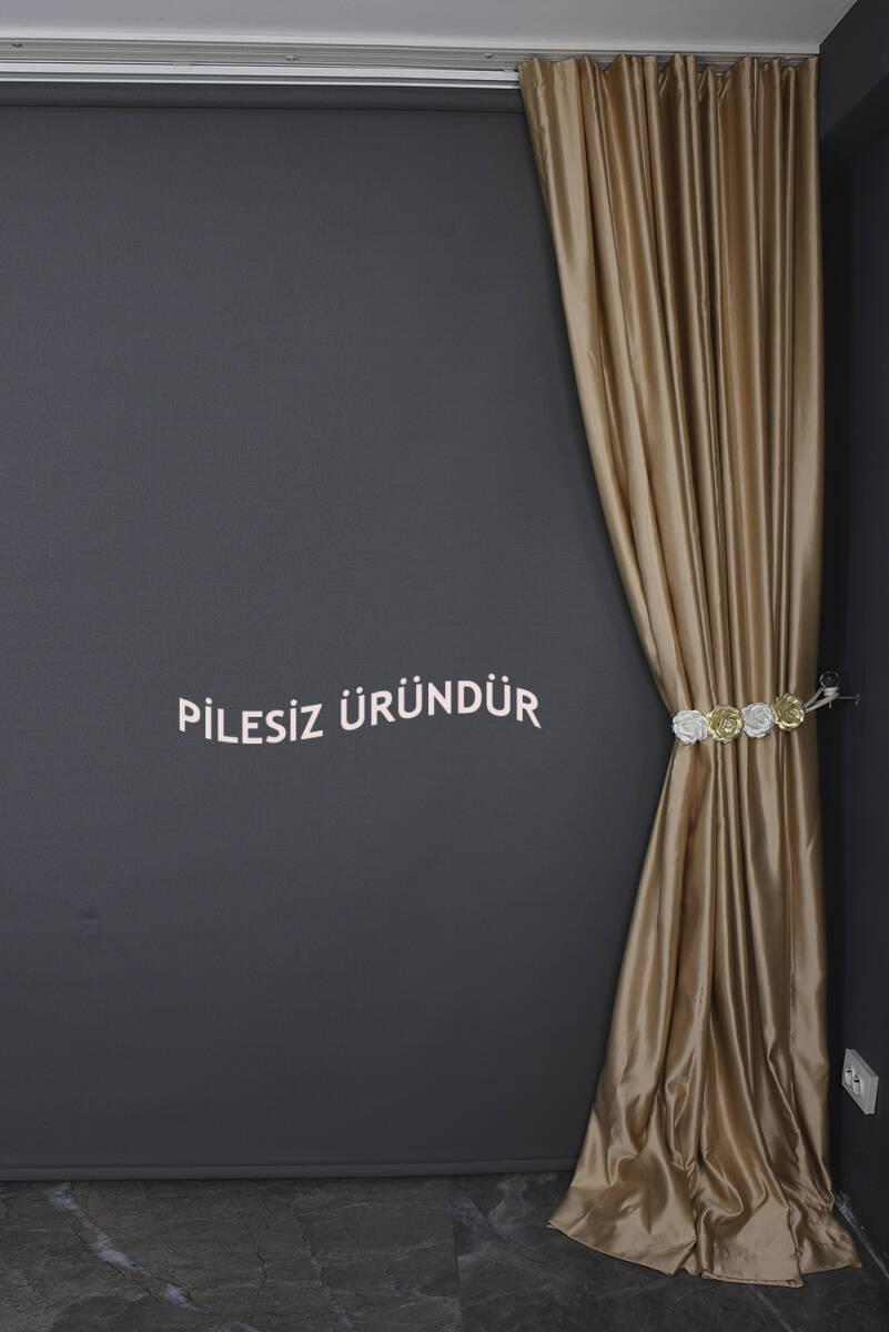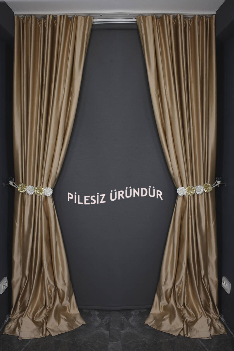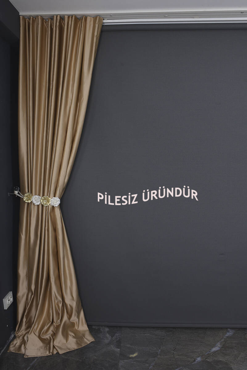 SATEN FONLUK PİLESİZ GOLD RENK TEK KANAT FON PERDE En 200 Cm Boy 260 Cm
