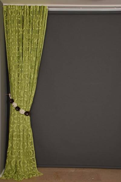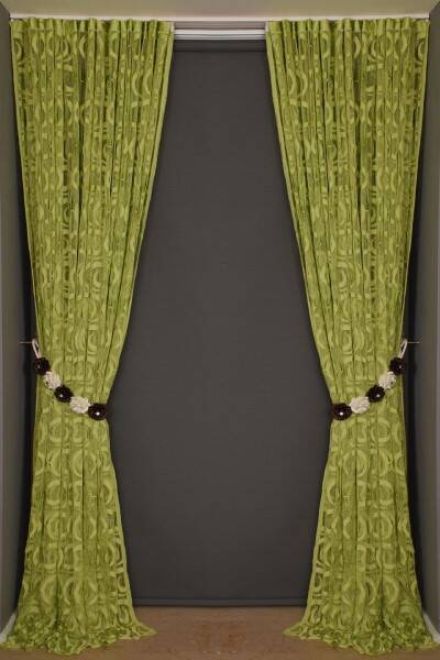 VAKKO MODEL YEŞİL RENK İP PERDE HAZIR DÜĞMELERİ DİKİLMİŞ İP PERDE 300*270 cm